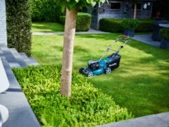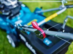4 in 1 functioneel; gras opvangen, laten liggen achter of links en mulchen.