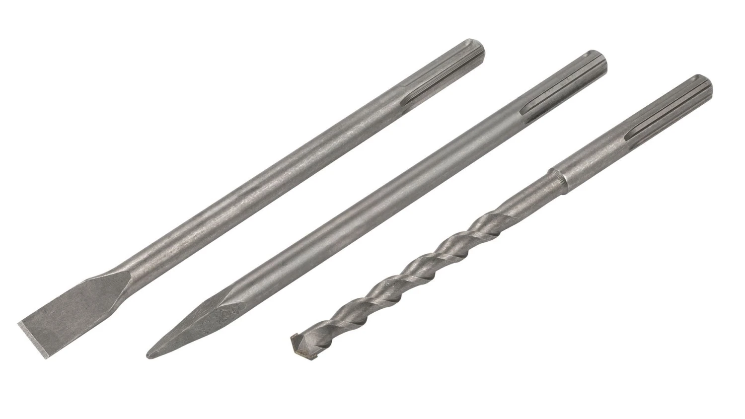 In de opbergkoffer zitten 1 SDS-max type boor, 1 SDS-max type puntbeitel en 1 SDS-max typeplatte beitel.