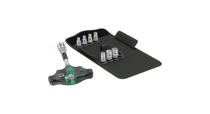 9-delige set in robuuste textiler box. 1 kruiskopschroevendraaier 411 A RA met ratelfunctie voor 1/4″ dopsleutelinzetstukken. 8 noten, 1/4″, met gereedschapszoeker Take it easy: Kleurcodering naar grootte.